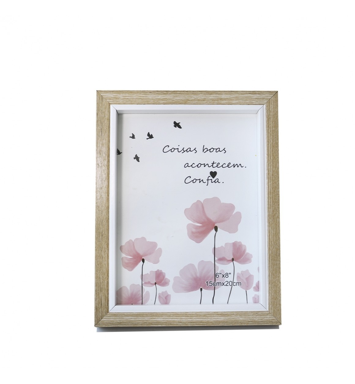 - Modelo caixa Madeira: A moldura em formato de caixa confere profundidade e cria um efeito tridimensional ao redor da foto. O Plástico imitando madeira traz um aspecto natural e versátil, combinando com diversos estilos de decoração.