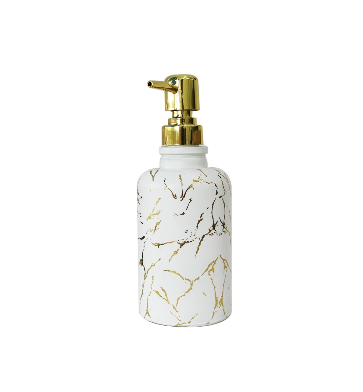 PORTA SABONETE LÍQUIDO DE VIDRO COM ESTAMPA MARMORIZADA 400ML - BRYZ10335-DOU.