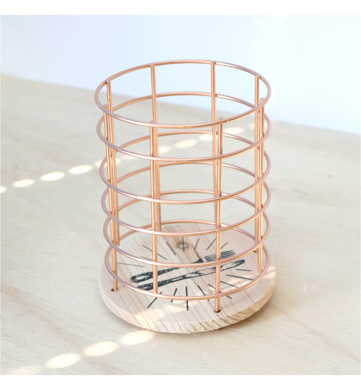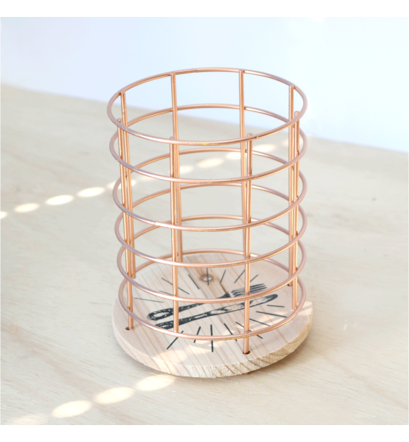 PORTA TALHER DE METAL ARAMADO REDONDO COM BASE EM MADEIRA 16X12CM - FERSC09-GR