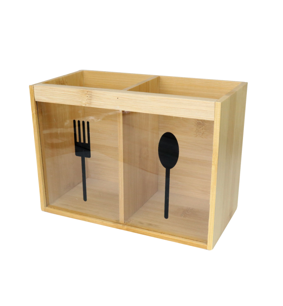 PORTA TALHERES DE BAMBU E ACRÍLICO COM 2 DIVISORIAS 18CM - CX171