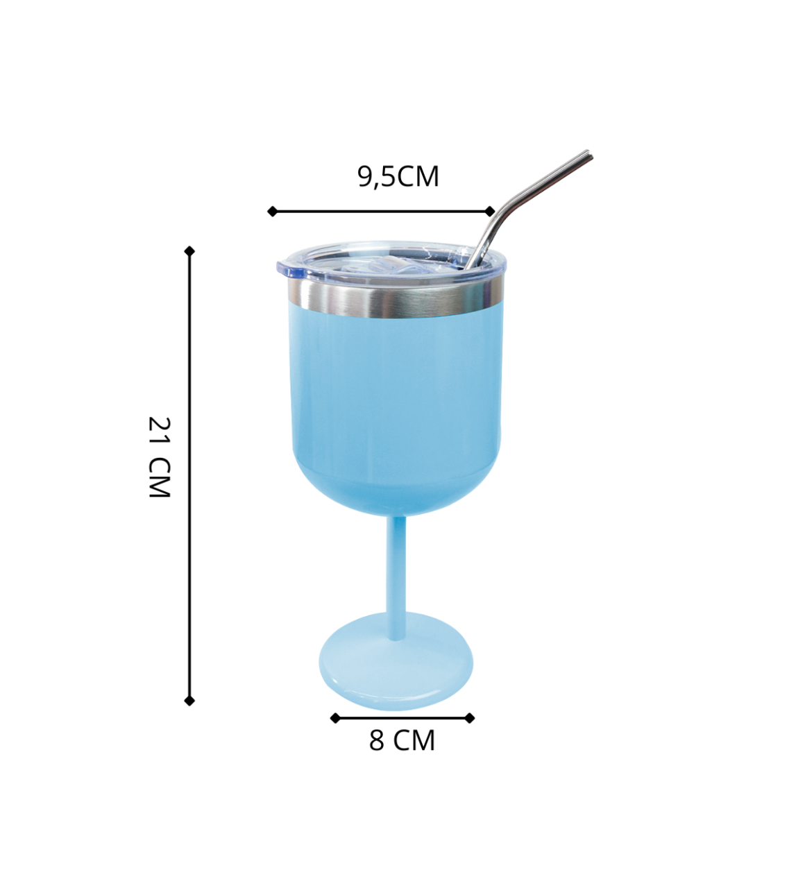 TAÇA INOX COM TAMPA DE PLÁSTICO E CANUDO DE INOX 550ML - GDR1462-AZ