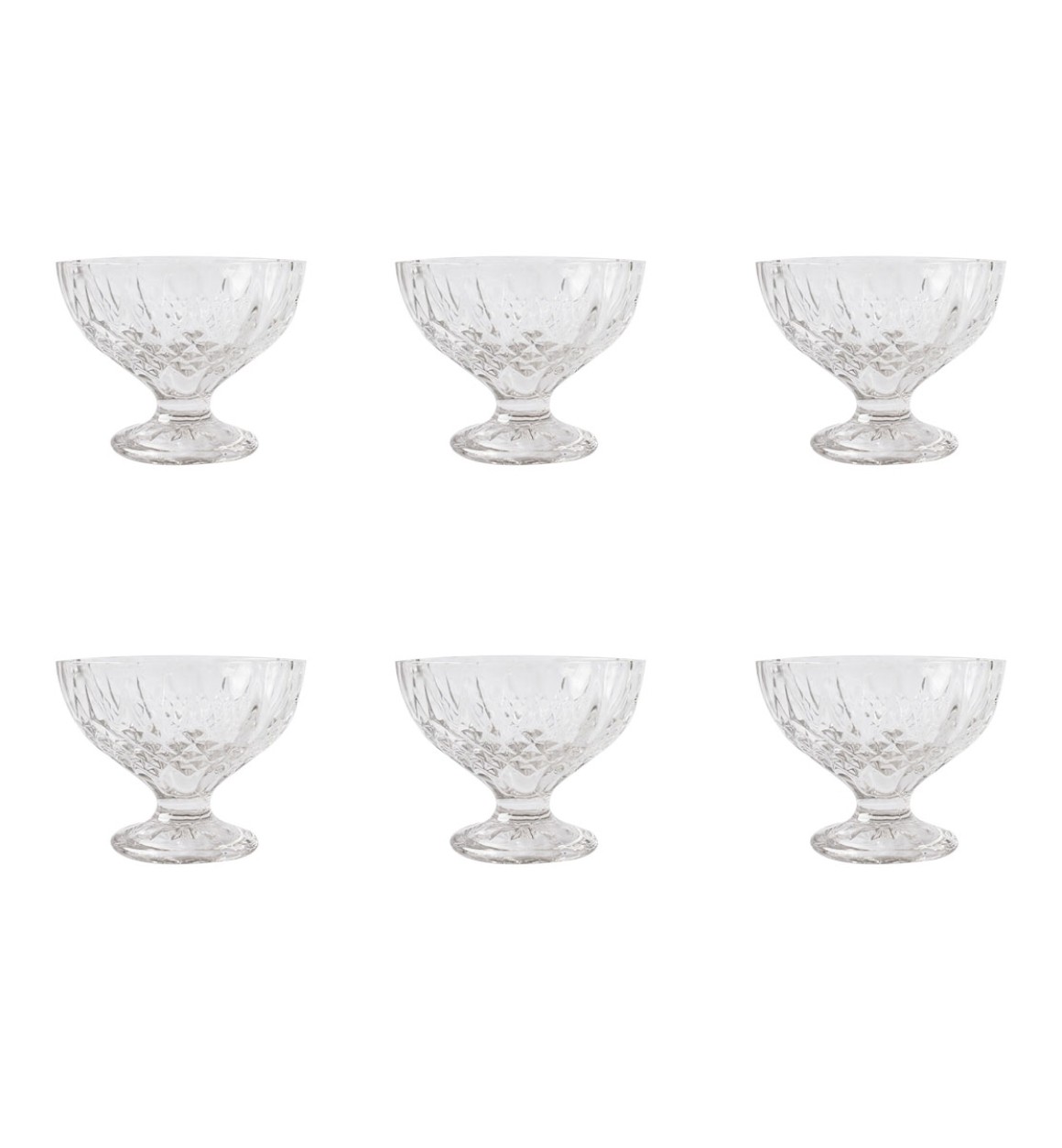 JOGO DE TAÇA DE VIDRO PARA SOBREMESA COM PÉ COM 6 PEÇAS - BM7164