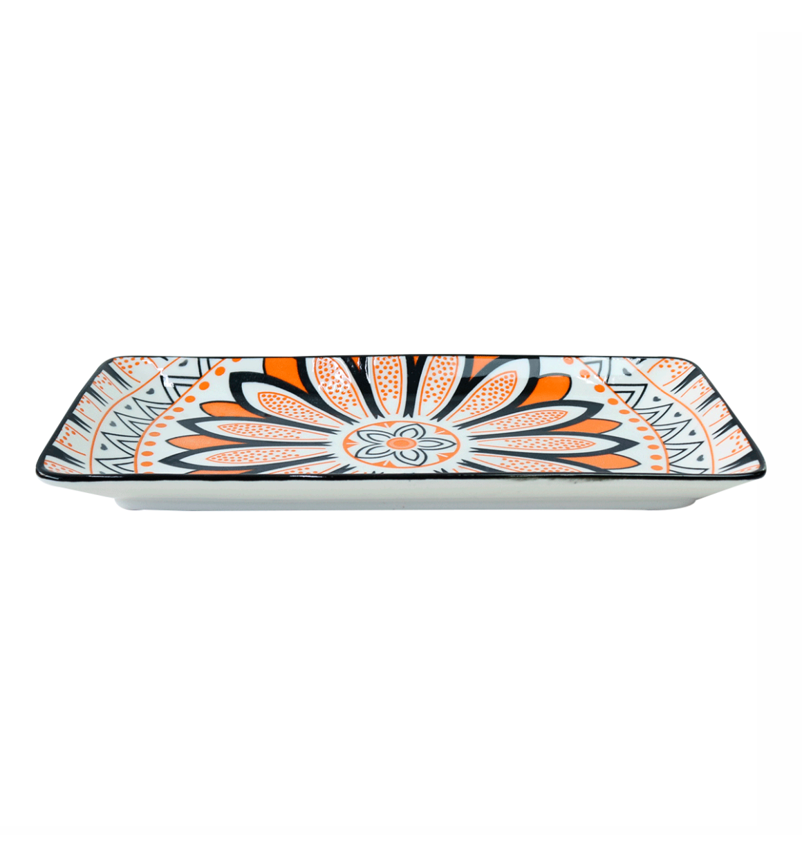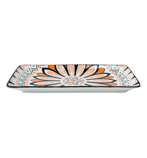 TRAVESSA RETANGULAR DE CERÂMICA ESTAMPADA 25X11,5X2CM - ZY033-A